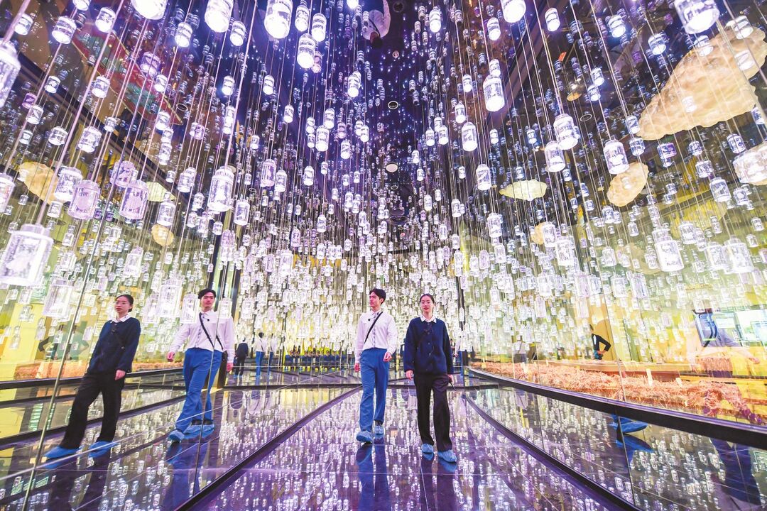 记者发现,这个以童趣为基调的展区里,处处藏着“科学小心机”——在水力互动区拧动水枪,水流便推着齿轮连轴转动,能量转化原理在哗哗水声里“活”了起来;巨大的光纤树色彩晶莹,搭配文字解说,光纤的奥秘一目了然;站上电磁大舞台,指尖轻触静电球的瞬间,发丝便随着电流“飞扬”;在诗词互动装置前,参观者可以和苏轼、李白“隔空对诗”……