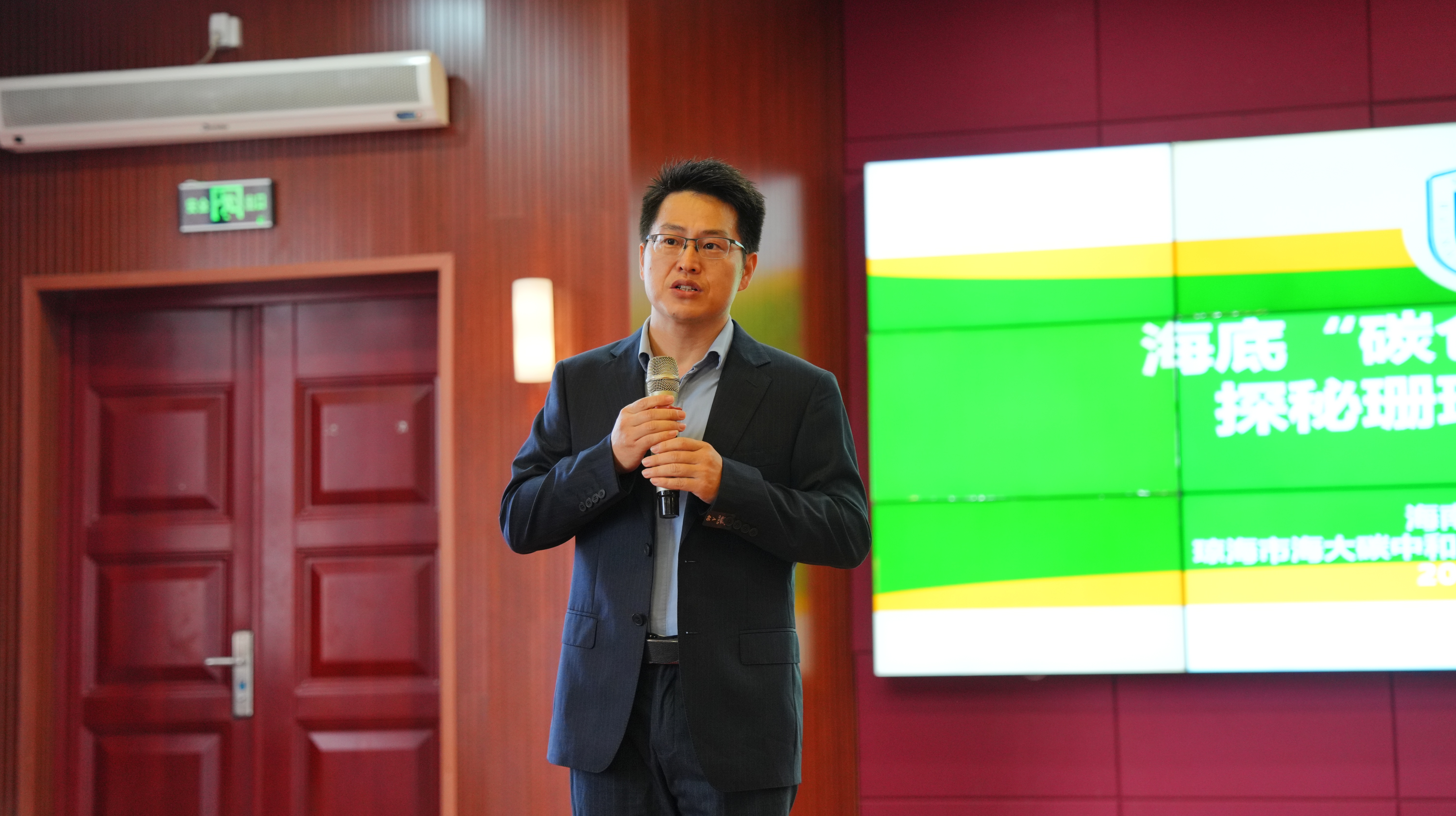 讲座现场,毛伟教授围绕海底“碳仓库”这一核心概念,系统阐释海草床、珊瑚礁及大型藻类的生态功能、分布特征与碳储存机制,深入解读其在应对全球气候变化中的关键作用。同时,教授重点剖析了气候变化与人类活动对这类生态系统造成的多重威胁,以深入浅出的讲解、生动鲜活的案例,引导学生全面理解蓝色碳汇的重要意义。