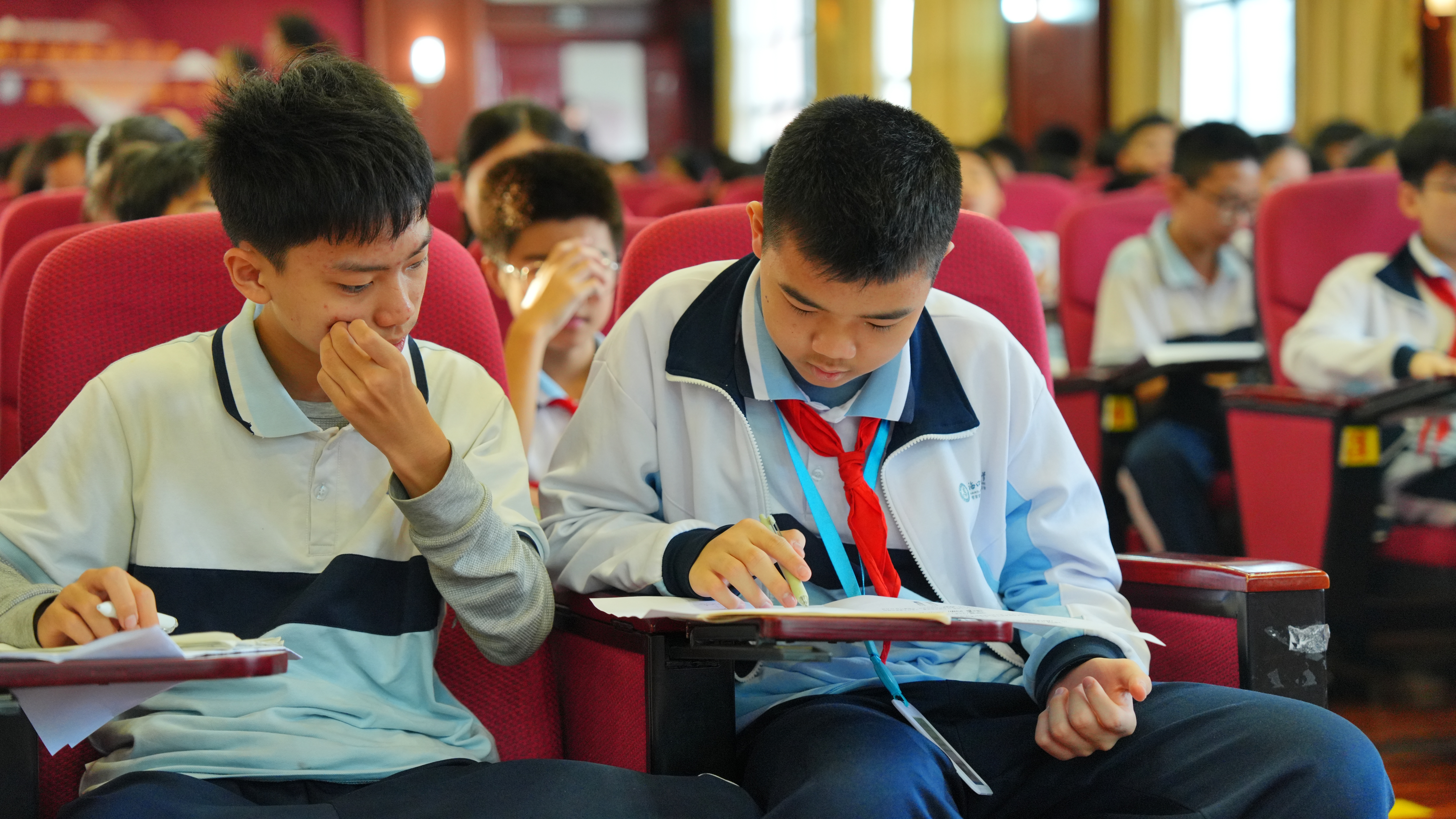 讲座尾声,现场开启“蓝碳守护者”互动环节。学生们被分为“珊瑚队”与“海草队”两大阵营,在限定时间内围绕各类涉海行为展开“保护”或“破坏”的分类判断与抢答比拼。