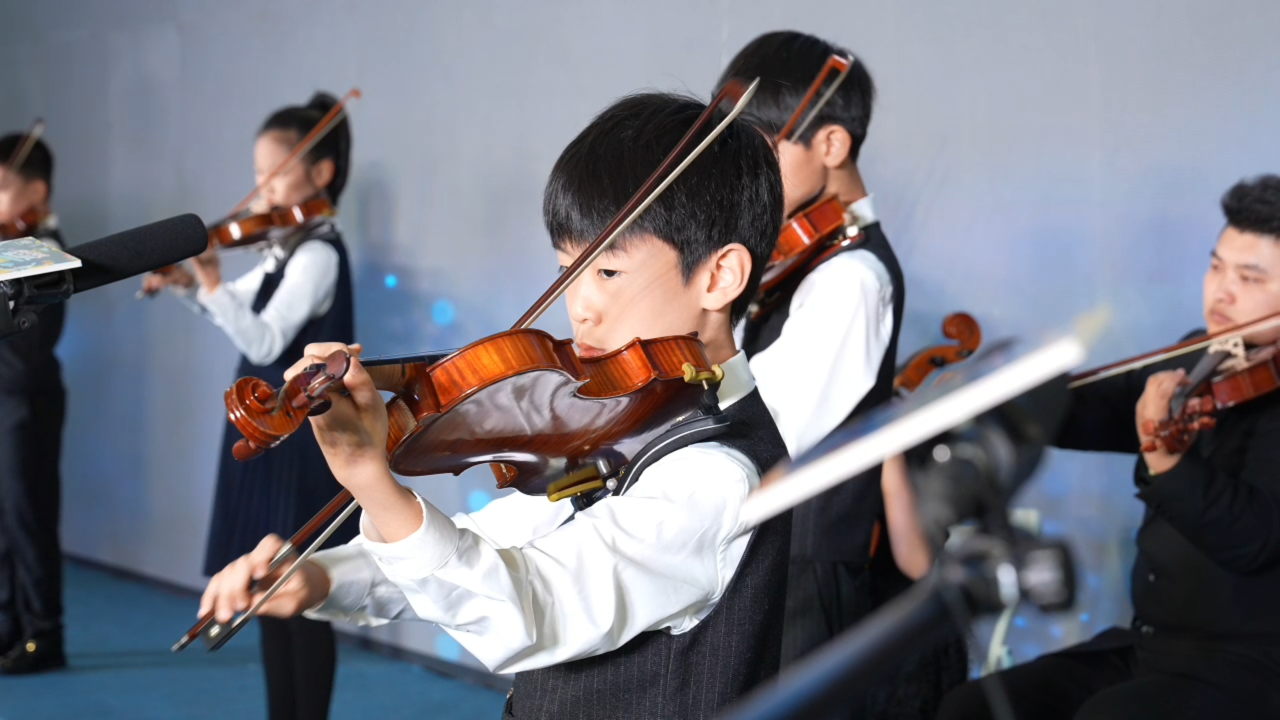 演出环节精彩纷呈,南北童声交替唱响。从洋溢着热带雨林风情的《抓蝉谣》,到勾勒北国风光的《这就是长春》,每首曲目都彰显了鲜明的地域风情。海口市小浪花弦乐团、海南省古筝学会、海口菲尔国乐馆以及海南华侨中学的学生们还带来了弦乐、民乐、诗朗诵等多元节目,共同奏响了一曲融合传统与现代、联结南北两地的青春乐章,将现场氛围推向高潮。最后,音乐会在全体表演者共同唱响的《歌声与微笑》中圆满落幕。