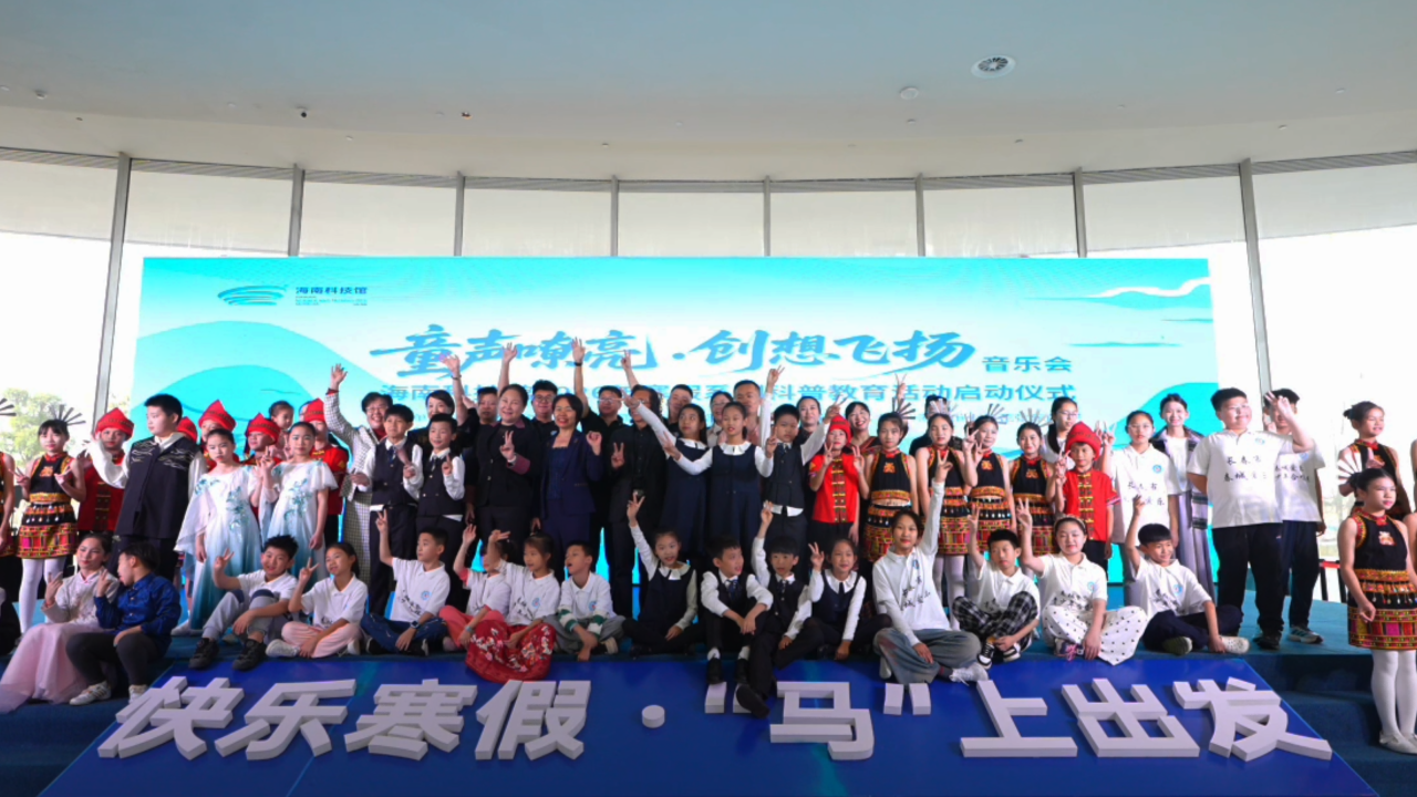 来自长春市春城爱乐青少年合唱团、五指山市雨林童声合唱团以及海口市小浪花弦乐团的青少年们齐聚海南科技馆,以一场南北交融、声动椰城的演出,共同拉开寒假科学盛宴的帷幕,并向全国青少年发出探索科技的盛情邀约。海南省科协党组书记、副主席许振凌,五指山市市委书记朱宏凌,海南科技馆馆长艾显威,五指山市市委常委、宣传部部长喻倩等领导与嘉宾出席活动。活动由海南科技馆副馆长胡秀娟主持。