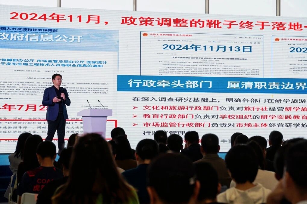 在专题分享环节,海南省研学旅游协会专家委员会主任、华南师范大学旅游管理学院院长刘俊教授,以《研学旅游——锻造文旅融合新质生产力 培育旅游消费增长新引擎》为题,深入解析当前研学旅游产业发展趋势,结合海南资源禀赋提出针对性开发路径,为现场从业者带来专业启发与思路指引,赢得阵阵掌声。